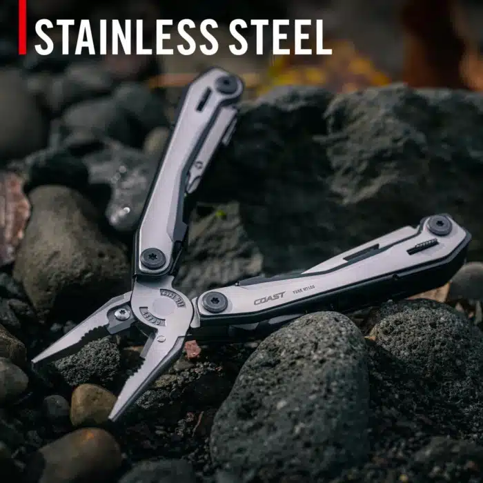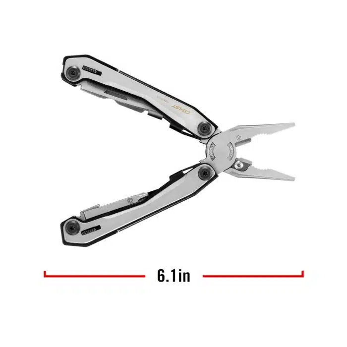 The Coast Stainless Steel ‘York’ Multi-Tool offers outstanding performance and value, delivering premium quality at a competitive price. Built with a durable stainless-steel frame and ergonomic aluminium overlays, it provides superior comfort and grip during use. Featuring 16 essential tools—including wire cutters, scissors, knife, file, and screwdrivers with locking mechanisms for added safety—this versatile multi-tool is perfect for marine use, camping, and everyday repairs. Supplied with a durable nylon carry case, it’s compact, reliable, and ready for any task.