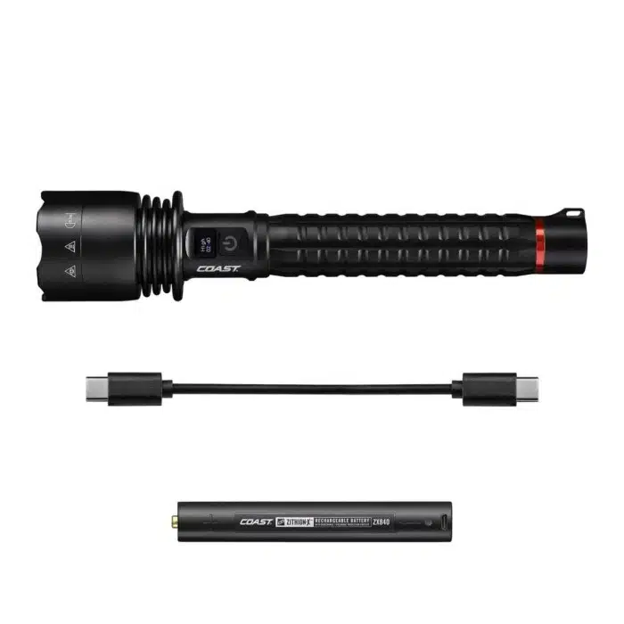 Experience next-level illumination with the Coast Power iQ torch, delivering an incredible 8,000 lumens of brightness. Its advanced Power iQ system removes all uncertainty by displaying remaining battery life in real time on a crisp OLED screen — shown in hours and minutes. Instantly see which power mode you’re using, ensuring total control and confidence. This versatile torch is both rechargeable and compatible with standard AA/AAA batteries, features slide focusing for adjustable beam control, and includes five power modes — from full brightness to a gentle ‘moon glow’ for reading. It even doubles as a power bank for charging other devices, while the IP54-rated water and dust resistance guarantees reliability in any condition.