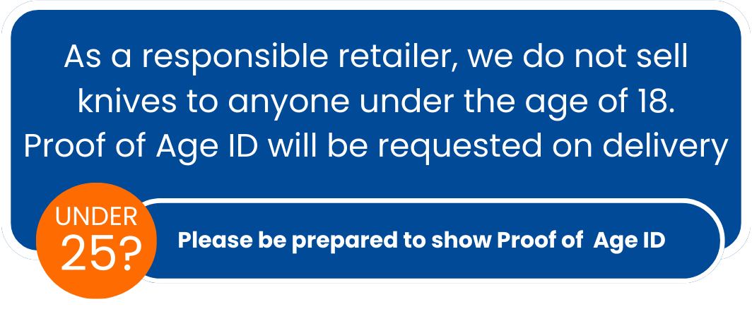 • Anyone 25 and under will be required to show proof of age. It is illegal to purchase any knives under the age of 18 years.
